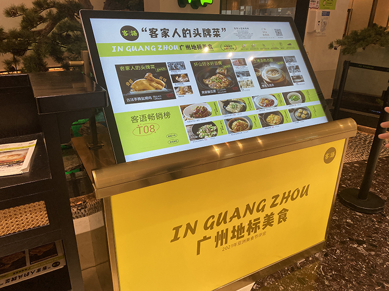 D廣告信息發布區。就是餐廳門面區域預留專業各種信息的發布位,內容包括門店近期主推新菜品,主打菜品的形象海報,菜品價格展示,門店招聘信息等等。這些信息可以用軟膜燈箱展示,也可以用電視屏幕滾動播放,內容版式設計必須遵循門店的品牌形象要求,讓消費者記住品牌,傳頌我們的品牌。