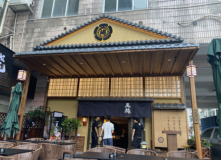 玉椿 燒鳥居酒屋,整體的品牌空間視覺呈現(xiàn)出江戶時代建筑風格,目的就是塑造出這是一家日料很地道,味道很純正,環(huán)境很舒服,消費很實惠的日本料理老牌子。