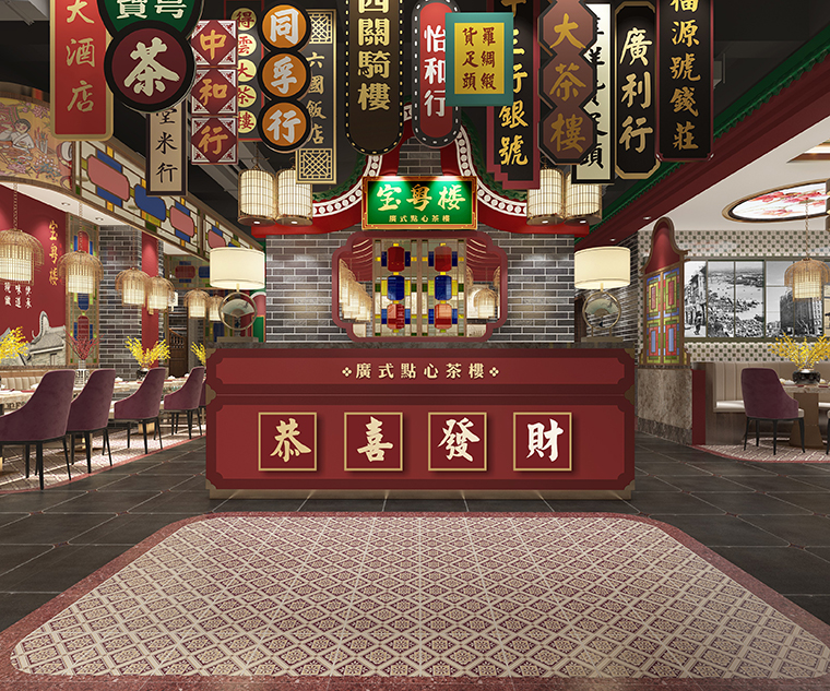 上海寶粵樓廣式茶點全天茶市餐飲空間裝飾裝修設計軟裝陳列設計