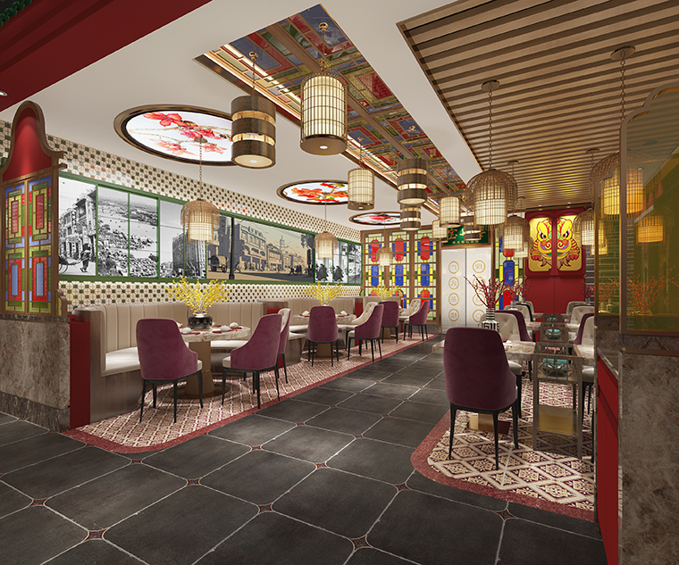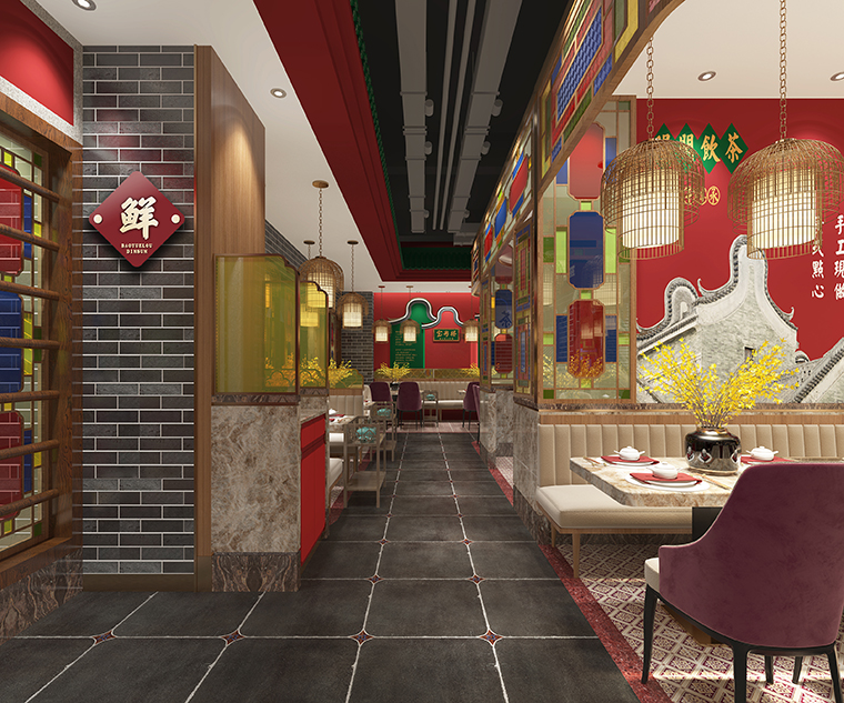 工作內容:上海廣式點心茶樓空間裝飾設計、軟裝設計、茶樓品牌植入、茶樓平面布局設計、廣式點心茶樓燈光設計