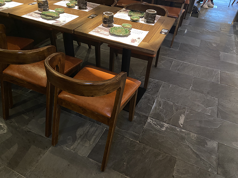 4、二樓6個包間,沿著精致的實木踏步樓梯上到二樓,青石板樓道,白色鵝卵石間隔,墻面用實木炭黑色的護墻板包裹裝飾,吊頂的原木質感,典型的日式家居風格。當很多女性消費者穿著和服,踏著木屐,捧著玉椿美食,依靠在移門上,端坐在臺階前自拍發圈分享時,玉椿品牌很快就廣為人知了。
