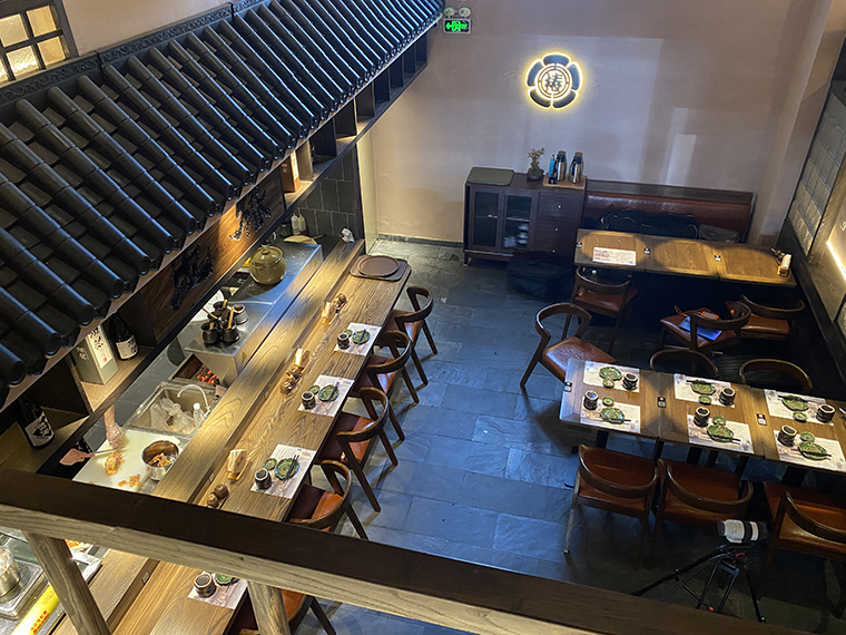 1樓是熱鬧區,二樓則是私密區,安靜區,6個包間,其中3個包間設置為榻榻米結構,滿足一部分顧客對日本料理飲食文化的追求,另外3個包間則使用了中式座椅,畢竟我們服務的絕大部分客人是中國人,還是要以中國人的使用習慣為主。2樓的2個大包間中間使用折疊門,可大可小,可以滿足了周邊客人中一些商務宴請,企業團建,小型會議的用餐需求,包間消費也容易把營業流水做起來。